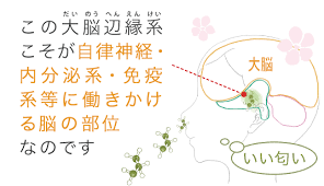 香りは嗅神経によって脳内に入り、大脳辺縁系に伝わります。