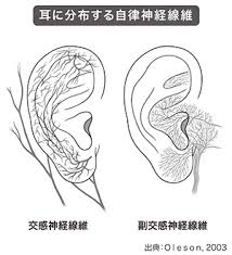 耳には自律神経の繊維が分布しており、耳の外側部分には交感神経、耳の穴を中心にして